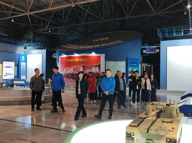 随后,队伍抵达了被誉为“中国坦克的摇篮”的一机集团。教师们沉浸于展览馆厚重的历史氛围中,不仅为馆内详实的史料和宏伟的现代成就所吸引,更为一代代军工人所展现出的自力更生、精益求精的“工匠精神”所震撼,对育人使命有了更深刻的感悟。步入展区,坦克、装甲车、火炮等尖端装备立刻映入眼帘。讲解员对其在国防建设中关键作用的阐述,让大家对“国之重器”的份量有了更真切的体会。尤为令人振奋的是《铁甲雄风》宣传片,它生动再现了中国兵器工业发展的伟大征程,影片中展现的辉煌成就,强烈激发了大家源于党坚强领导的民族自豪与爱国情怀。