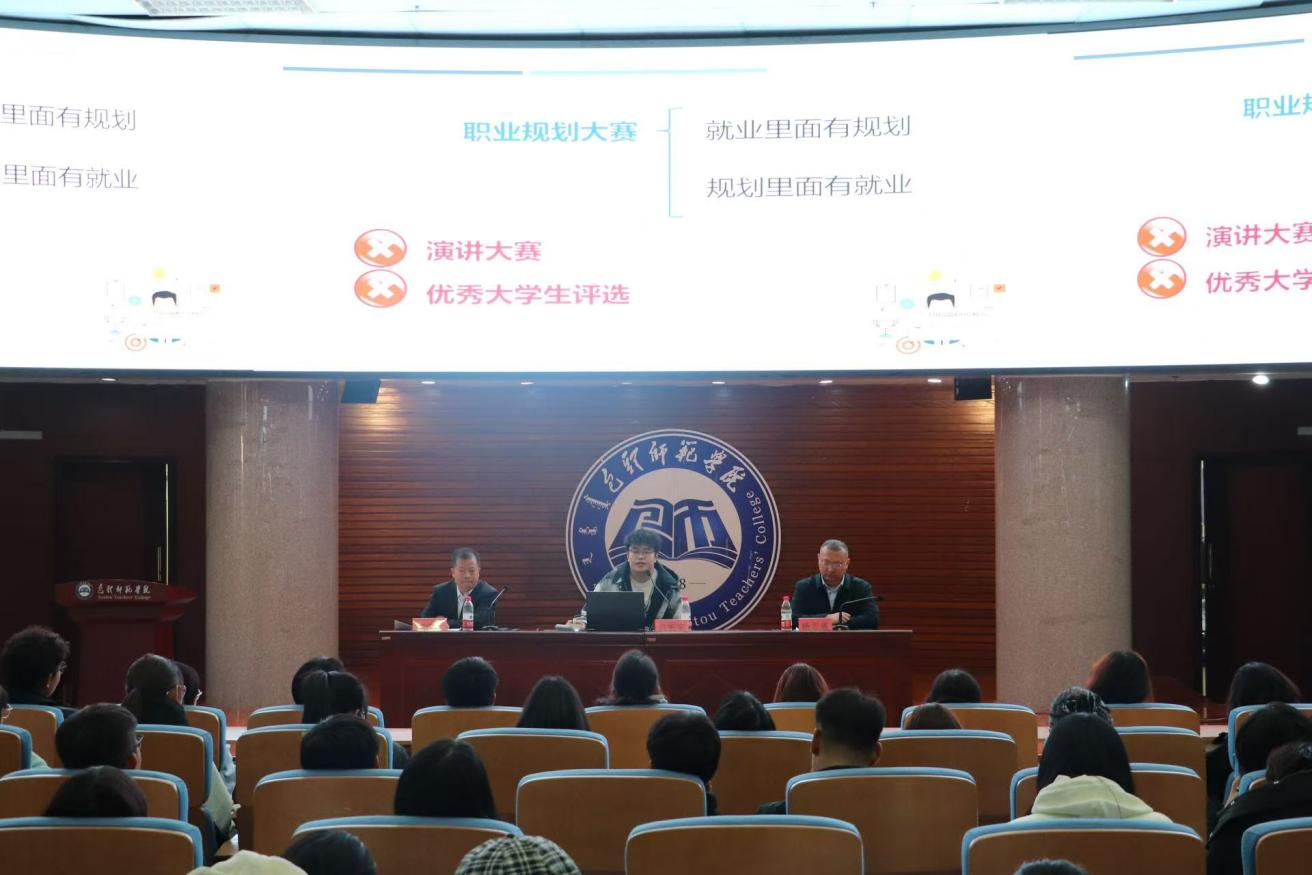 白宏宇同学结合自身参赛经历,分享了从校赛、省赛到国赛的成长历程与备赛心得。他表示,职业规划大赛不仅帮助自己明确了职业目标,也为顺利就业奠定了坚实基础。据悉,他已凭借优异表现成功被包头市第四中学录用为化学教师。