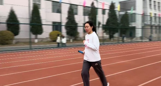 赛场上,化学学院参赛队员精神抖擞、斗志昂扬。发令枪响的刹那,第一棒选手如离弦之箭般冲出起点,迈着矫健的步伐穿梭在赛道上。后续队员早已在交接区严阵以待,接力棒的传递不仅是速度的衔接,更是信任的传承。寒风中飘扬的院旗与选手们奔跑的身影相映成趣,每一次摆臂都凝聚着力量,每一步跨越都承载着期待。化学学院学子用拼搏诠释青春底色,用协作彰显团队力量,为这个寒冬注入了滚烫的热血与激情。