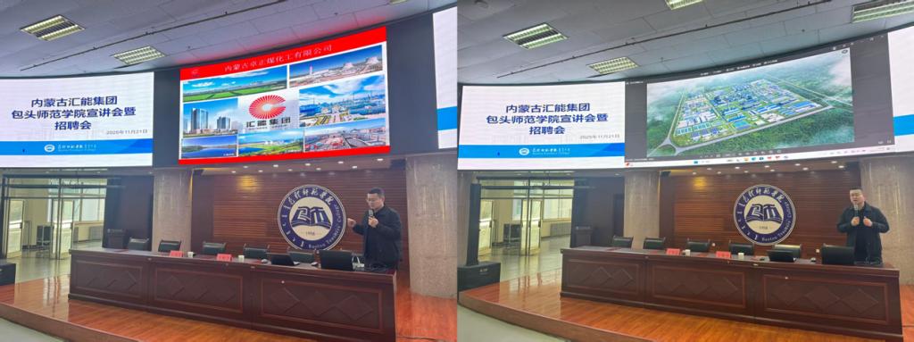活动伊始,汇能集团代表登上讲台,借助报告厅的大型显示屏,全方位展示企业形象与实力。屏幕上,汇能集团旗下产业园区的全景图、现代化厂房以及集团标志清晰呈现,企业代表从企业发展历程、核心业务、行业地位等方面展开宣讲,让同学们对汇能集团的规模与前景有了直观且深刻的认知。