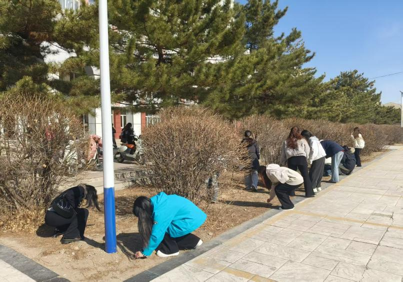 在实践环节,同学们分成小组,手持分类垃圾袋在校园内开展垃圾清理与分类投放。大家仔细拾捡散落在草坪、道路上的各类废弃物,并按照规范进行分类处理,用实际行动为美化校园环境贡献力量。