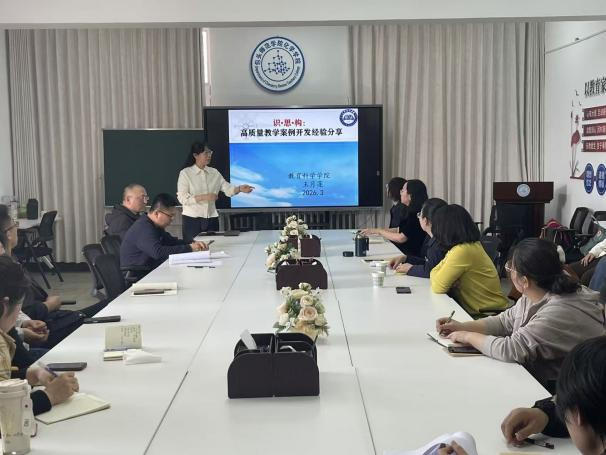 为深化教学改革、提升教师教学案例开发能力,打造支部特色品牌,包头师范学院化学学院教工党支部依托“慧教有道”教师工作坊,于2026年3月26日邀请教育科学学院王月莲教授作《基于“识∙思∙构”的高质量教学案例开发经验分享》专题报告。学院领导班子、全体教师齐聚会议室,共探教学案例开发的专业路径与创新方法。