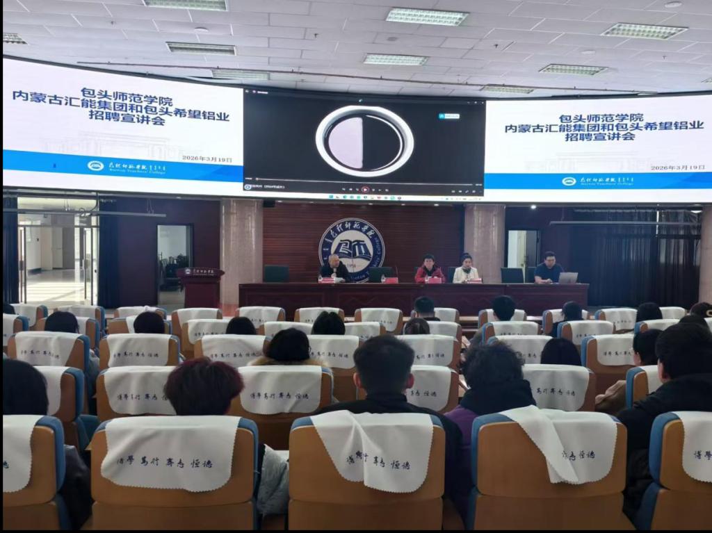 为深入推进产教融合,搭建校企人才对接桥梁,助力毕业生高质量就业,3月19日上午,化学学院联合信息科学与技术学院在博学楼学术报告厅举办重点企业招聘会。内蒙古汇能集团、包头希望铝业企业负责人,化学学院、信息科学与技术学院相关人员、学生参加了招聘会。