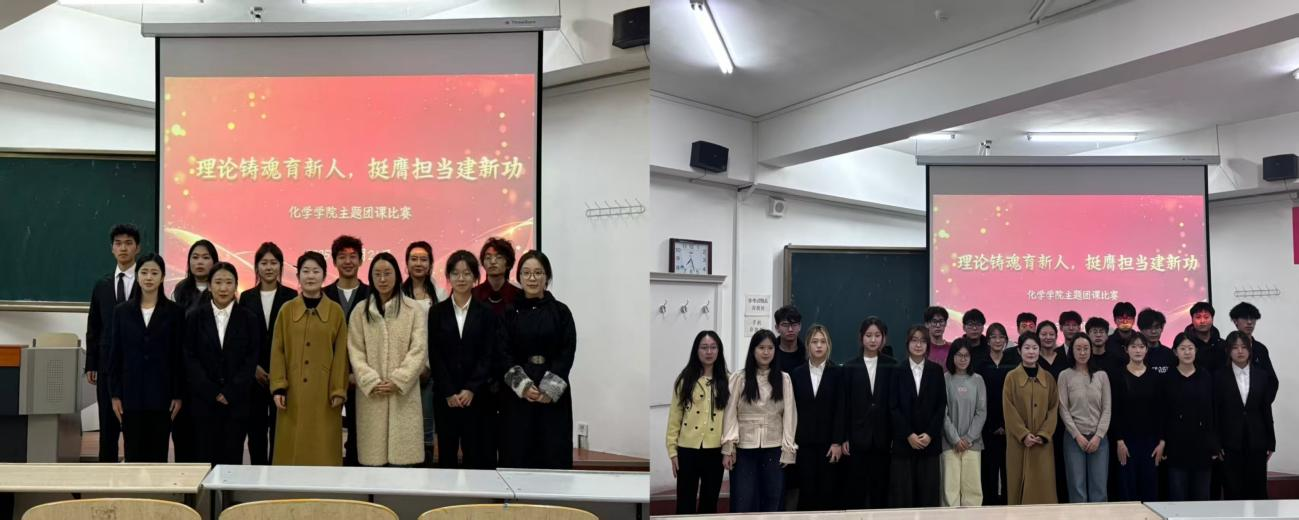 为深入学习贯彻习近平新时代中国特色社会主义思想,激励同学们坚定理想信念、勇担时代使命。化学学院团总支于2025年11月21日举办了“理论铸魂育新人·挺膺担当建新功”团课比赛。本次活动吸引了化学学院各年级团支部的积极参与,通过理论宣讲、主题演讲等形式,展现了化学学院同学们奋发向上的精神风貌。