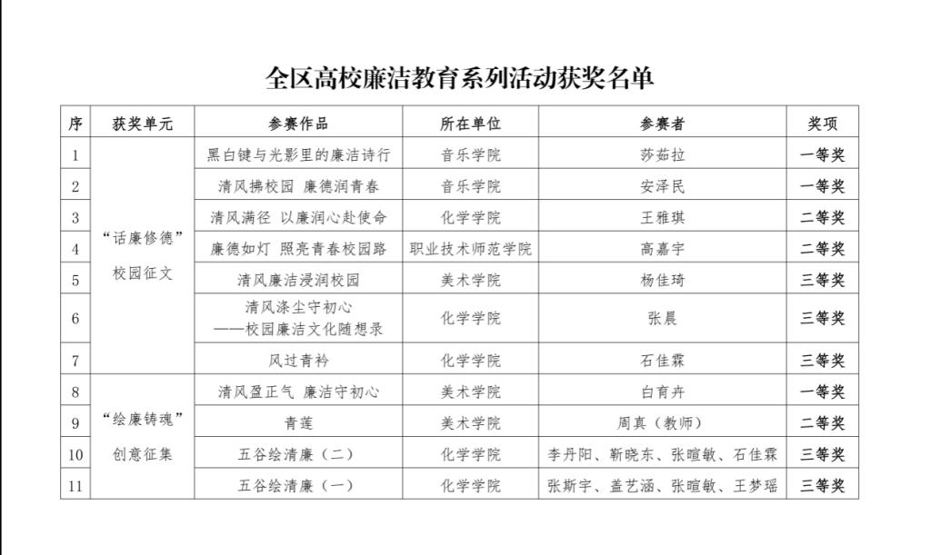 喜报!化学学院在全区高校廉洁教育系列活动中喜获佳绩
