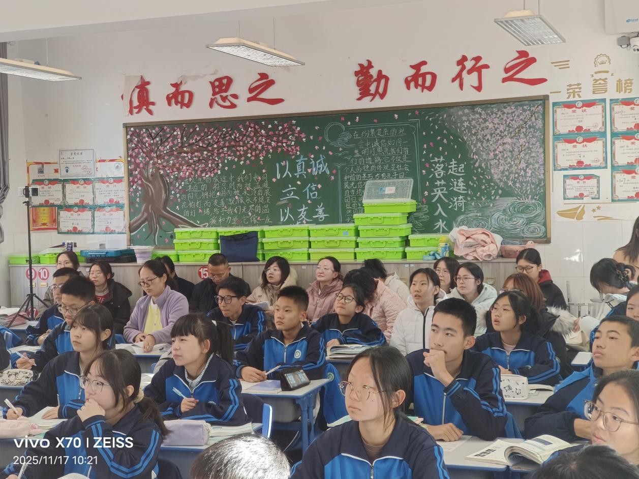 在东联中学,走访组一行首先走进课堂,全程聆听了实习生张娟同学的授课。课堂上,张娟同学围绕教学目标精准设计教学环节,通过实验演示、课堂提问等多样化教学方法激发学生兴趣,展现出扎实的专业基础与日渐成熟的教学风采。课后交流中,史继敏老师对张娟的课堂表现给予肯定,他表示:“从学案设计的细节到课堂节奏的把控,都能看到实习生的用心与进步,这样的实践机会对师范生成长至关重要。”张骁勇院长则代表学院,对东联中学为实习生提供宝贵锻炼平台及指导教师的悉心培育表达了诚挚感谢。