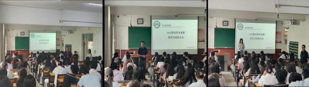 实习工作启动之初,学院领导及化学系主任高度重视、周密部署,亲自主持召开实习动员大会(见图1)。会上,领导们紧扣化学学科“实验为基、探究为本”的特色,着重强调实验教学指导、课堂互动引导等核心教学能力的培养要点,明确实习任务与目标。动员大会后,学院领导更是亲自带队,将实习生逐一送至各实习学校,为实习工作的有序开展筑牢坚实根基。